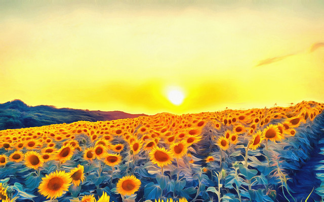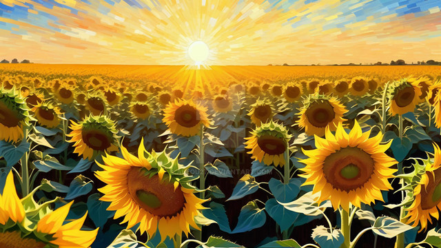 #artwork #beauty #dreamlike #field #floral #gogh #illustrative #painting #pastoral #scene #style #sunflower #sunset #van #vibrant #autumnal