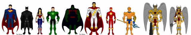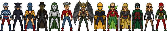 A few changes Bailey2088, what do you think?Aquaman, Hawkman, Hawkgirl, Blue Devil, Captain Atom, Firestorm, Elongated-Man, Citizen Steel, Supergirl, Mon-El, Hush, Tomar-Ru, Robin (Dick Grayson), Martian Manhunter (Silver Age), Green Arrow (Silver Age).