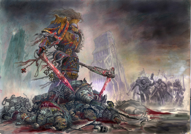 Wow, you're fast becoming my favourite warhammer artist. The faces alone are just amazing, and you truly capture the larger than life batshit crazy aspect of the series, and for once these figures seem grand and terrifying rather than ludicrous and humourous.