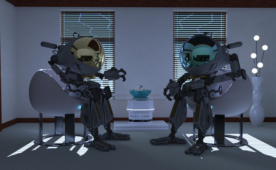 Part of a personal project I did. Inspired from an interior from archdaily.I really liked it because of the inclusion of oldschool robots that were fun to model!