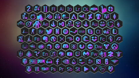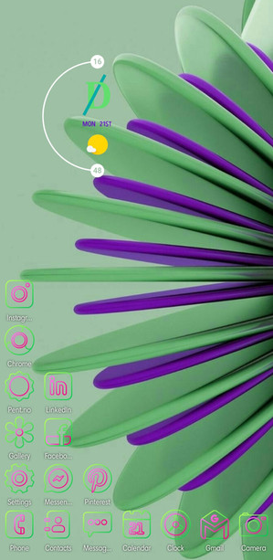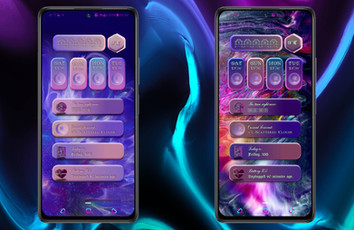 Colorful theme in pink, purple and blue.Dynamic lock screen with motion effect.