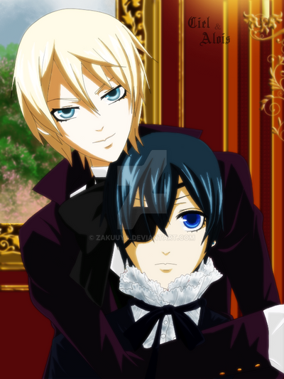 Finally finished OwO This was a request~ It took me two days if not more to complete~ an Alois and Ciel fan art (^w^) my first serious attempt ever to draw Alois x''3~