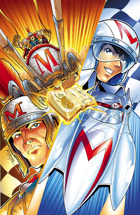 Cover to IDW's Speed Racer series. It was a challenge to combine a painterly style with anime-style characters. I think Alex Ross did a brilliant bridging of the two styles with his G-Force covers, the feel of which I wish I could have aped in some regard. Not sure if I'm completely satisfied with this piece, but I did appreciate educational value of the exercise nevertheless.Related content
