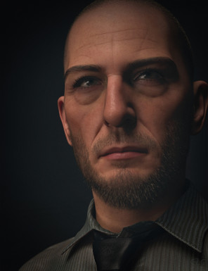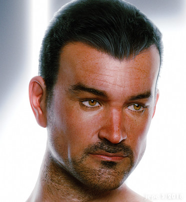 What I've added however was an additional spot light above and slightly before his face to accentuate his detailed facial characteristics.