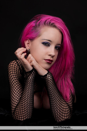First off, the purple plays well off your skin and hair. Also, this photo has a classic pin-up feel to it, but in a contemporary way (if that makes any sense). Finally, your just really beautiful.