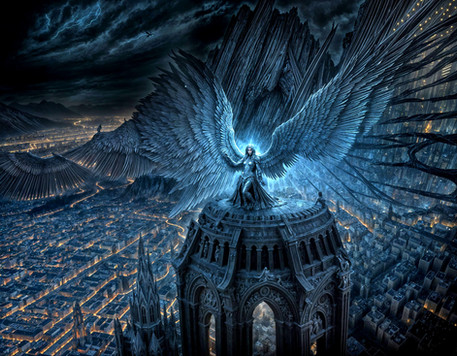 whooooaaa. the city/bridge details are so...well... DETAILED! REally good. the sn in the background really looks like it's glowing. great!