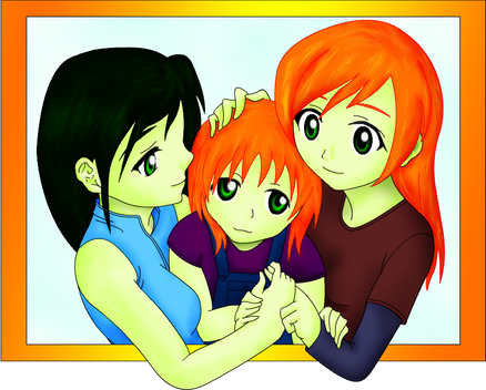 OM, this one is so ADORABLE! and no worries, I could tell that this wasn't shego, just by her face. shego is older and more mature than this, plus she has a harder face as well. I've always thought that Kim and Shego would (read SHOULD! hahaha!) get together, even just once. they're both hot. keep up the great work. btw, is Kim the baby's "other" mother, or more like an aunt figure?