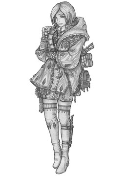 I love the combination of the delicate hood and skirt and the heavy armor. <3