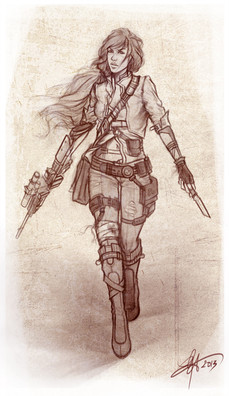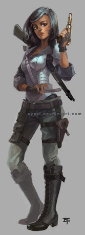 Great art. But I think she need a sword, not a gun