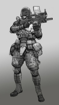 Reminds me of Gears of war. Awesome armor style and beehive knee pads.