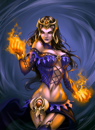 Great outfit! It's so different from the usual magic-type ladies. Sexy smoke effects there.