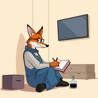 #alex #anthro #anthropomorphic #bank #box #clothed #dock #field #fishing #fox #furry #landscape #mountains #randomkat #river #rod #trash #water #alexrandomkat