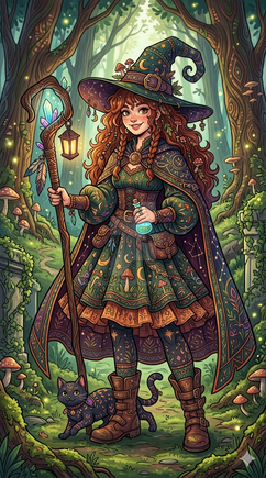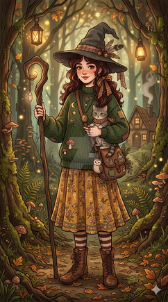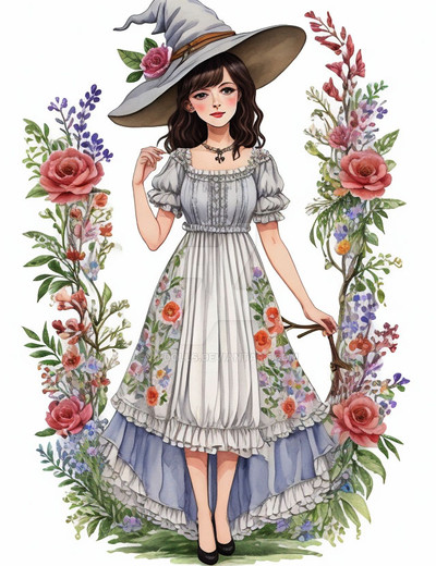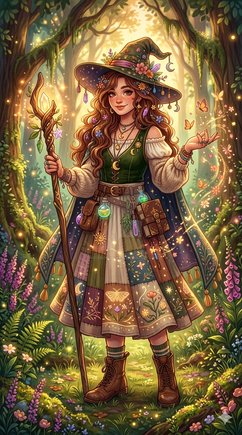 #digitalart #characterdesign #magic #witch #fantasyart #fairytale #cartoon #adoptable #fantasycharacter #dress #forest #floral