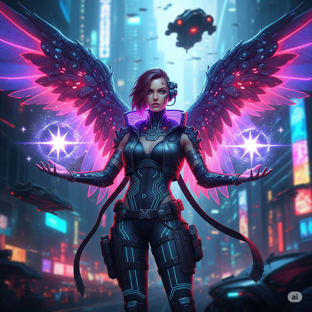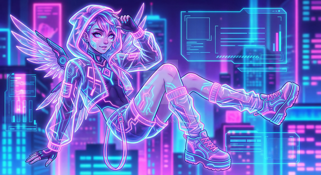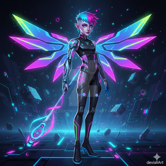 #digitalart #fanart #characterdesign #videogamefanart #cyberpunk #neon #overwatch #scifi #angel #anime #adoptable #originalcharacter #magic