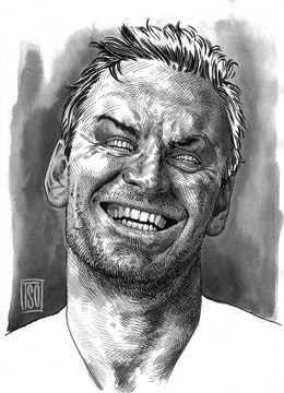 Very nice piece! The upside down angle is intriguing and inviting and the piece shows a softer side of this character.