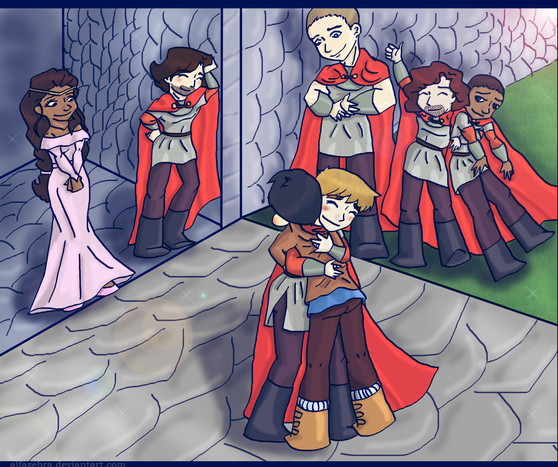 Very cute, especially Gwaine! I'd expect that expression from Arthur but Merlin...I'd kind of expect him to just kinda hug Gwaine back...he does on the show!