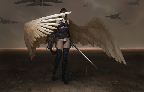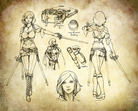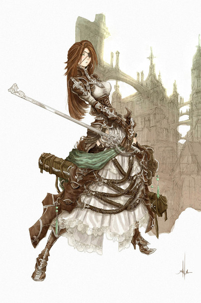 Hi! Another sword chick! Done with my old, dying, rotten Graphire, while I wait for a smooth coversheet to arrive for my shiny new Intuos4 that's still waiting inside its paper and plastic coccoon!If you guys are really bored, you can stalk me on twitter [link] or on my blog! [link]