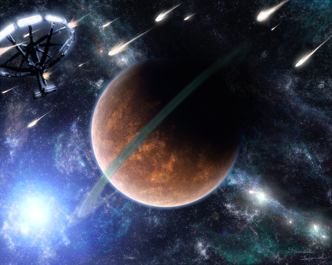 He paid no heed to star dust. The ball of gas that lay in his path was so insignificant that to even call it an inconvenience would be like saying a blade of grass was a hindrance to the determination of a glacier. The tunnel of fire from which his ship shot imploded behind him. A pin prick of a wound in the side of a giant. It would heal in the raging inferno of the star's nuclear fires almost instantly. The planet that now had the misfortune of interrupting his path, would not.