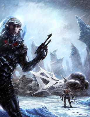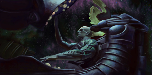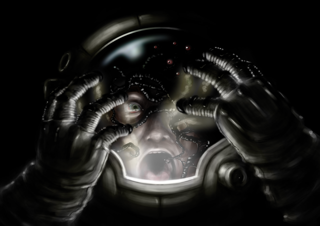 A very similar concept is explored in Alistair Reynolds novel "Revelation Space" and its sequels "Redemption Ark" and "Absolution Gap." I actually found this piece while searching for fan art of the series. Great work btw, particuarly with the look of shock and horror on the astronaut's face.