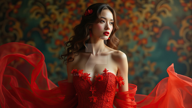 #artistic #artwork #canvas #concept #conceptual #contemporary #decorative #design #fashion #flowers #girl #illustrative #modern #ornament #postcard #red #style #wallpaper #woman #art