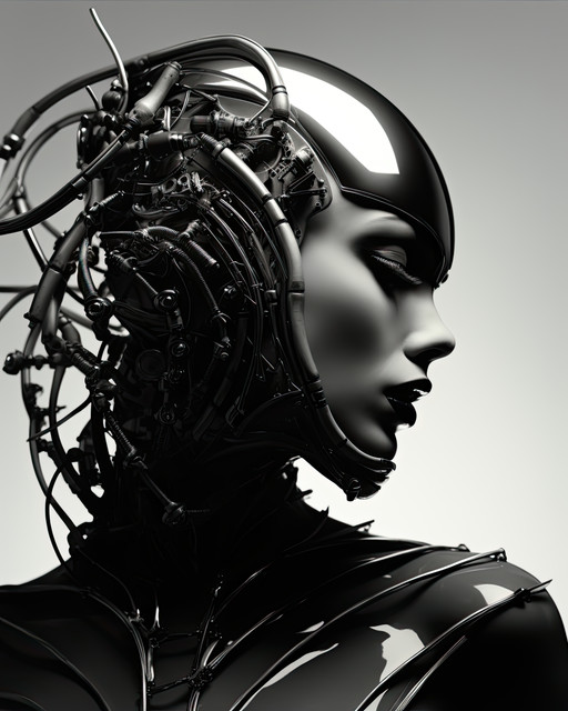 #blackandwhitephotography #evolution #face #fantasy #future #organic #robot #robotgirl #robotic #sciencefiction #scifi #technology #futuristicscifi #cyborgcharacter #midjourneyart