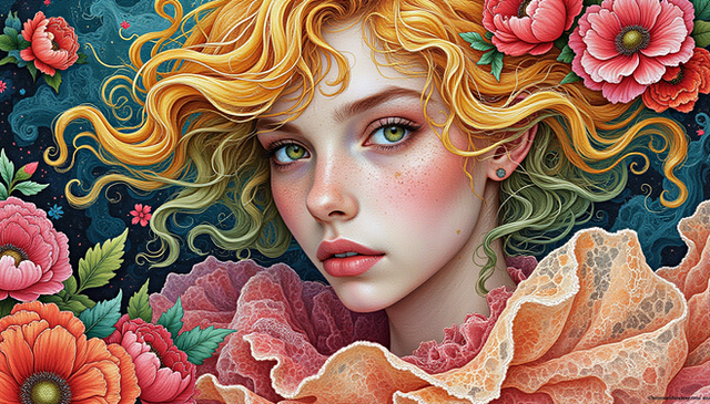 #beauty #floral #flowers #girl #ornaments #painting #paintingdigital #portrait #woman #artworkdigital