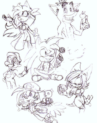 So, Tails is dressed as Mario while holding a fire flower while Earthworm Jim tries to kiss him due to the fact that Metal NiGHTS is flying overhead while crushing a chao's head in its hand. Ristar looks on with glee as doctor Robotnik recognizes Bug and freaks out. If Sega were to make a game where this happens, I would love them forever. Sure they'd have to get a lot of licenses but hey, sometimes you just gotta say "WTF Sega?"Tails, Ristar, Robotnik(Eggman), Chao, and Bug are copyright to SEGA.
