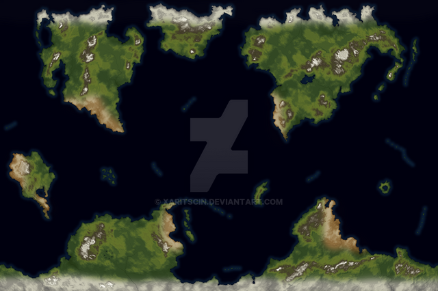 A very well done setting. I see a nice variety of particular climates and seas placed in realistic locations on the map. The coastlines are also very cool. Awesome work!