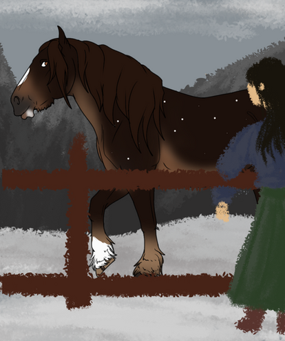 ‘Maybe this wasn't a good idea.’ was all that Annabeth, thought to herself as she watched the old stock trailer rock back and forth. The loud trumpeting calls from within signifying a very angry horse.