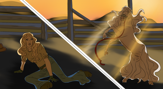 “Now, are you sure about this Miss?” The seller asked, eyeing the rocking trailer. Annabeth nodded. “Of course I am. My daddy was a rodeo man and I've grown up around these horses.” She said, shooting a sweet smile.