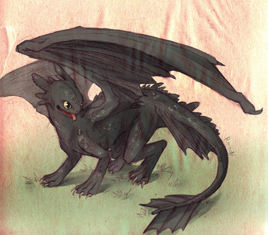 Doodle of Toothless, the Night Fury from How to Train Your Dragon... basically the coolest dragon ever created. I've never drawn anything from this awesomesauce movie before, weirdly enough. Thank you glitchedpuppet for helping me fix some mistakes!! Drawn in Adobe Photoshop with a Wacom tablet.Artwork by Alice X. Zhang
