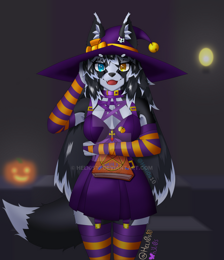 #anthro #costume #furry #halloween #kawaii #magic #pumpkin #witch #wolf #rainbowhair