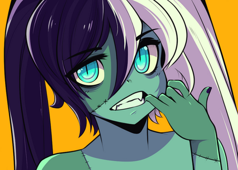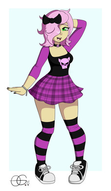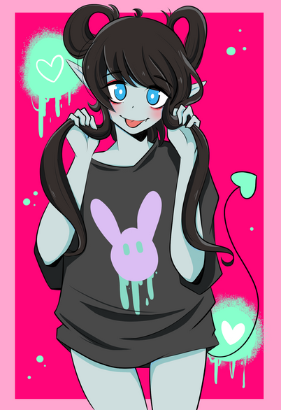 #anime #cute #kawaii #nosebleed #originalcharacter #skirt #original_character #anime_girl #art_trade #blue_hair #scene_girl #keyhole_sweater