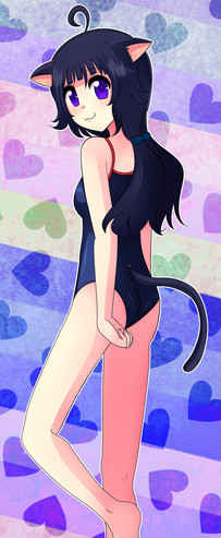 #ass #cute #digital #fanart #kawaii #markings #tail #pricia #forceofwill #swimsuit #kemonomimi #anime_girl #cat_ears #twin_tails #blue_hair #card_game #pig_tails #kemonomimigirl