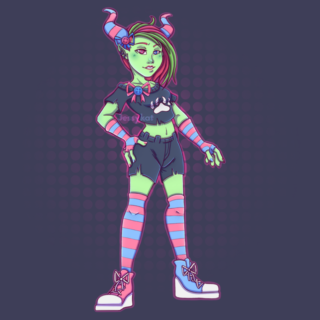 #anime #animegirl #emo #goth #horns #monster #monstergirl #punk #tail #bandshirt #converseshoes #fishnets #monsterenergy