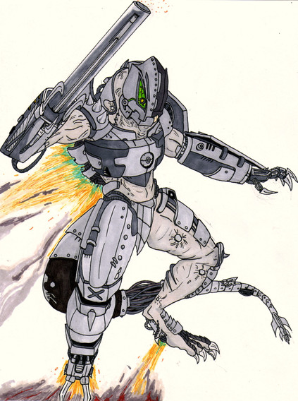 I had to give up to the perspective because its quite hard to draw simetric robot parts when i have viewing points