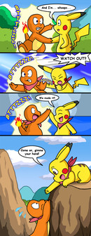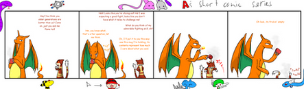 Hahaha, I was expecting something like that or a "LAZOR" blast. Nice comic. I'm going to assume Charmander's legs are so long because that's your human-turned-pokemon character that you choose in the beginning.