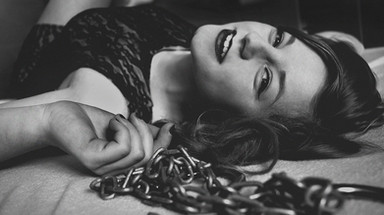 This is such a beautiful photo. It tells a story, first of all, and that;s what I can appreciate of it the most. THen there's her smiling, but it's not a big smile, it's more of a smile of entertainment from the activity she is engaged into. The rope shows just enough cleavage, which I love.