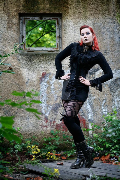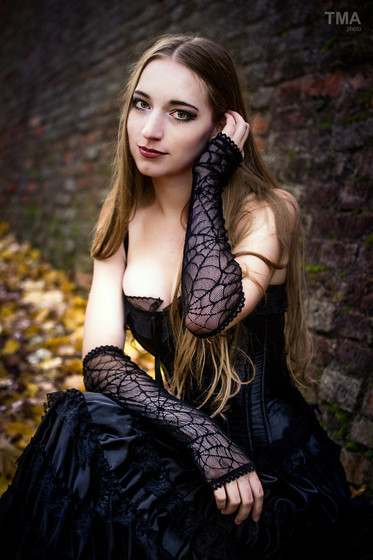 I really enjoy her dark style as well as the way this dress seems to highlight her female charms in a rather classy way.