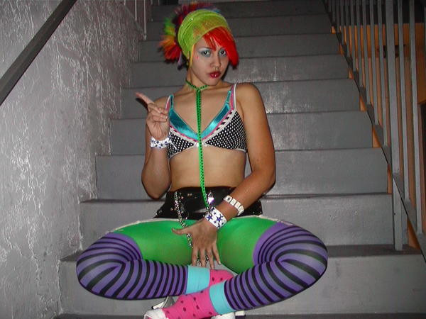 This an outfit I made for a One Day Anime Convention. The see thru aqua top is now for sale in my etsy shop. $15! [link]I didin't make the hair falls but I am selling those too. Message me on Etsy if you are interested in those