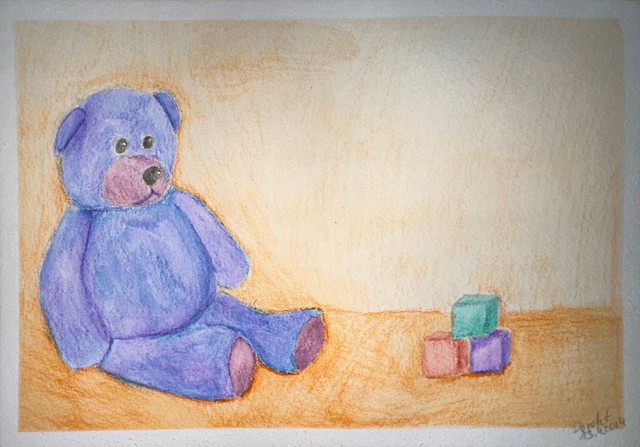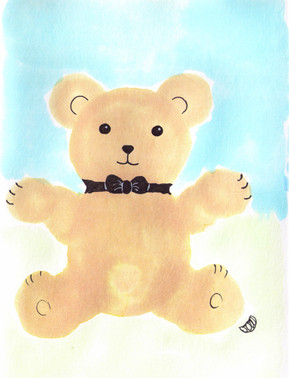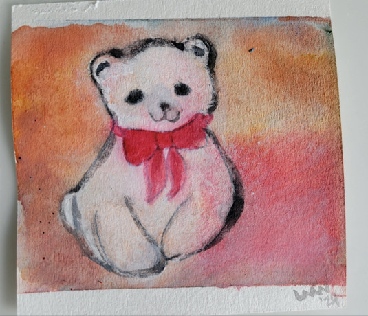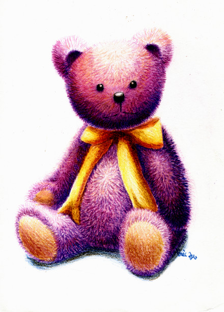 My Bear. I've had this guy since long before I met my husband. poor thing is starting to get a bit worn.I'm really pleased with the color on this one, I was using my tiny split primary pallet, and I managed to get a pretty good purple out of it. I spent a couple of hours a week or so ago just mixing colors and making color wheels and I think it really paid off.
