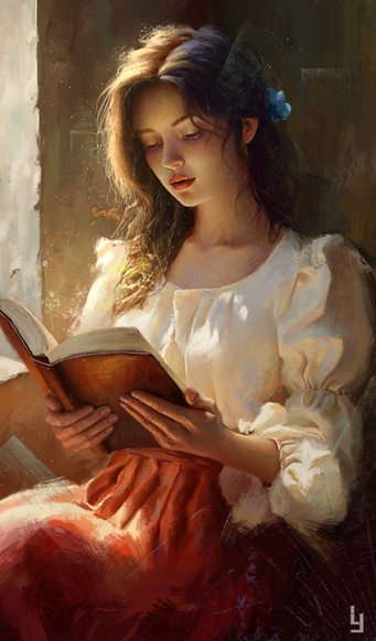 Congratulations on the DD! This is absolutely stunning. I love everything about it, the light, the paint effect and her look - as if she is truly captivated by the book. Great great work!