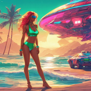 #digitalart #digitalpainting #scifi #alien #space #beach #dancing #dog #girl #landscape #music #ocean #originalcharacter #spaceship #tree