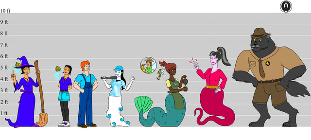 So this is my final alien height chart featuring aliens that are either more rarely reported (though enough to be credible) or not actively involved in abductions. From left to right you have the Browns, the carrion eating "clean-up crew" as they are referred two, young and old versions of a male and female Tall White, and a badly done light being; I wanted to have it colored but photoshop wouldn't let me.comments welcome