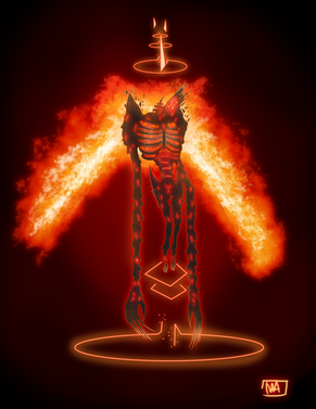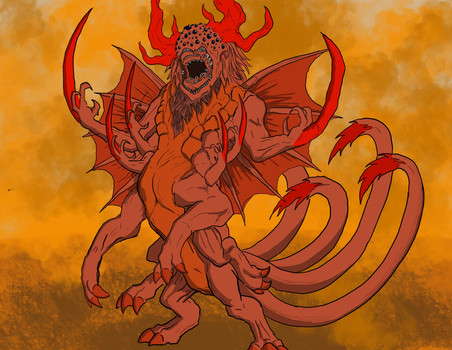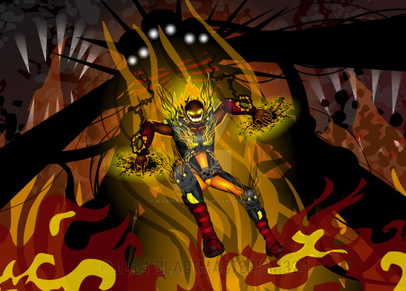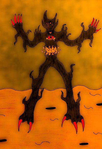 This is my first Halloween piece of this year. It is based on something I've drawn before (I'll let you guess) and the Balrog from The Lord of the Rings. All I will say about this scenario is that science and the supernatural collided and the results are horrifying. If there's enough interests I might make a short story about this.As always, comments and critiques are welcome.