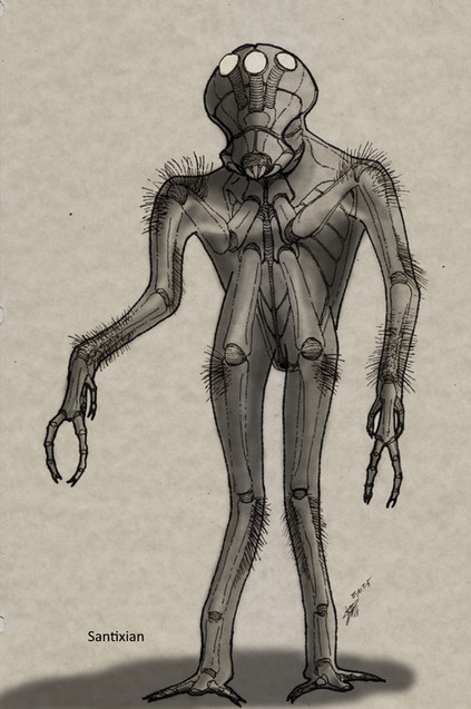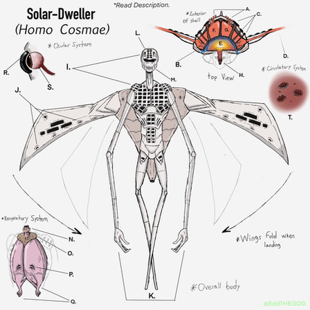 Found time to make an updated version of my Space Man concept. To recap, this is a human species (likely to be included in my story Centauri) that was genetically engineered to survive the vacuum of space as well as exoplanets/exomoons with harsher environments. A side from a slight bulge in its back for storing waste to expel, the main body is relatively the same. The main changes are the wings being more bat-like, the main thrusters moved from the wings to a set of secondary back appendages, and it's secondary thrusters being moved from the back of its legs to the center of their now star-shaped feet. In a way, it kinda resembles a tall, bony version of the Mothman.As always comments and critiques are welcome