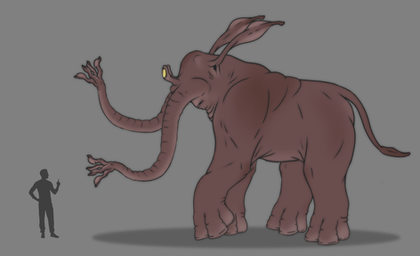 This creature is heavily inspired by something I saw in a very old National Geographic book about the known universe. It had a segment where it speculated very outdated ideas of lifeforms on the various planets and moons of our solar system. My personal favorite was a creature called a Martian Waterseeker. It had very thin limbs and neck due to Mar's low gravity, a trunk-like proboscis to probe its surroundings for water, a feathery tail to shield itself from uv radiation, and large ears to pick up sounds in Mars' thin atmosphere and to incase itself during storms and cold nights. My interpretation is similar aside from adding more meat to the limbs and neck. I also imagine it as an omnivore that would nibble on desert plants and lick up colonial invertebrates similar to ants and termites. As obscure as the inspiration is, I probably won't use it for any of my projects (this might change in the future). That said, what I like about this creature is that it can be interpreted as either an alien native to a low gravity desert world or a distant descendant of rats or mice that brought to a terraformed Mars.As always comments and critiques are welcome.