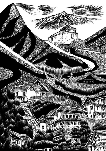 #kirkjufell #landscapescenery #traditionaldrawing #tuschezeichnen #inkdrawing #icelandscape