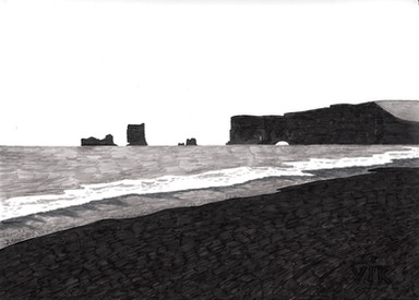 Kirkjufell Church Mountain in Iceland 2016Inkdrawing Tuschezeichnen A4 30*21 cm