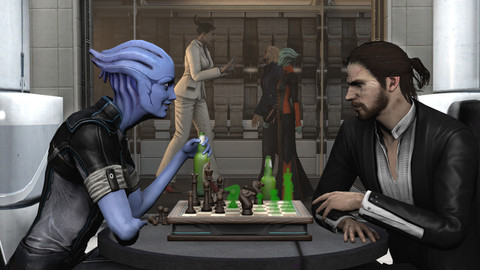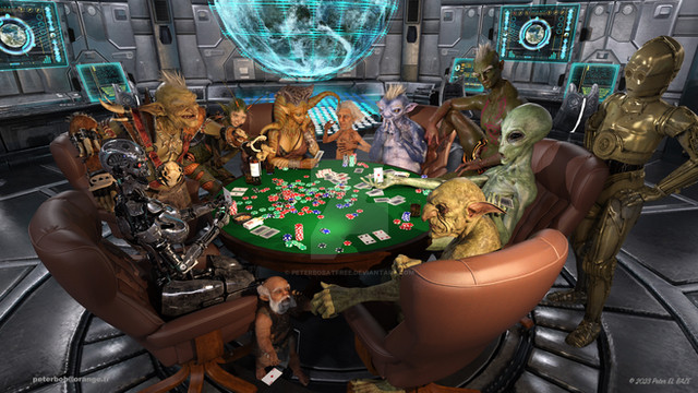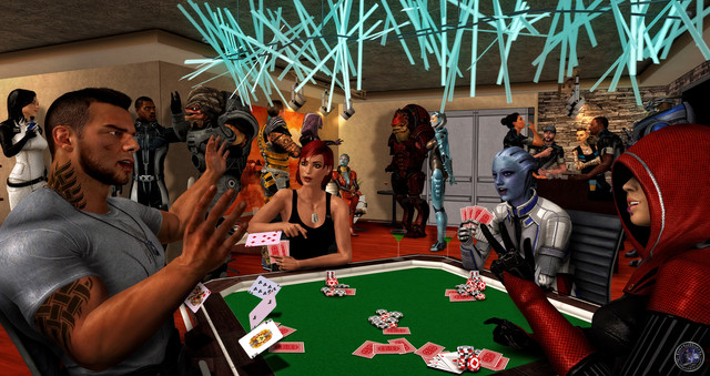Hehe, I love this piece! Having a poker night with the guys is just what my FemShep would want! She would join them without a second thought